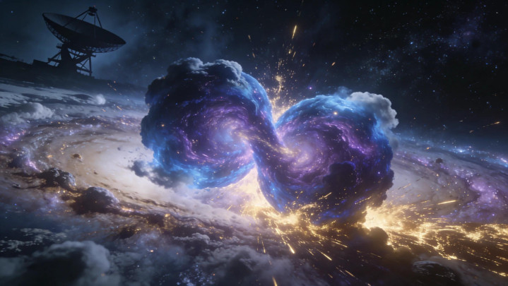 4.5万光年外的撞击现场,高速云以雷霆之势撞向星河系角落,在火与浩瀚中,“峨眉双星团”悄然设立。它们还很年青,尚未经验超新星爆发的浸礼;它们又很近,用自己存在解释天地中莫得竣工的“禁区”——毁掉与创造,从来王人是天地演化的一体两面。