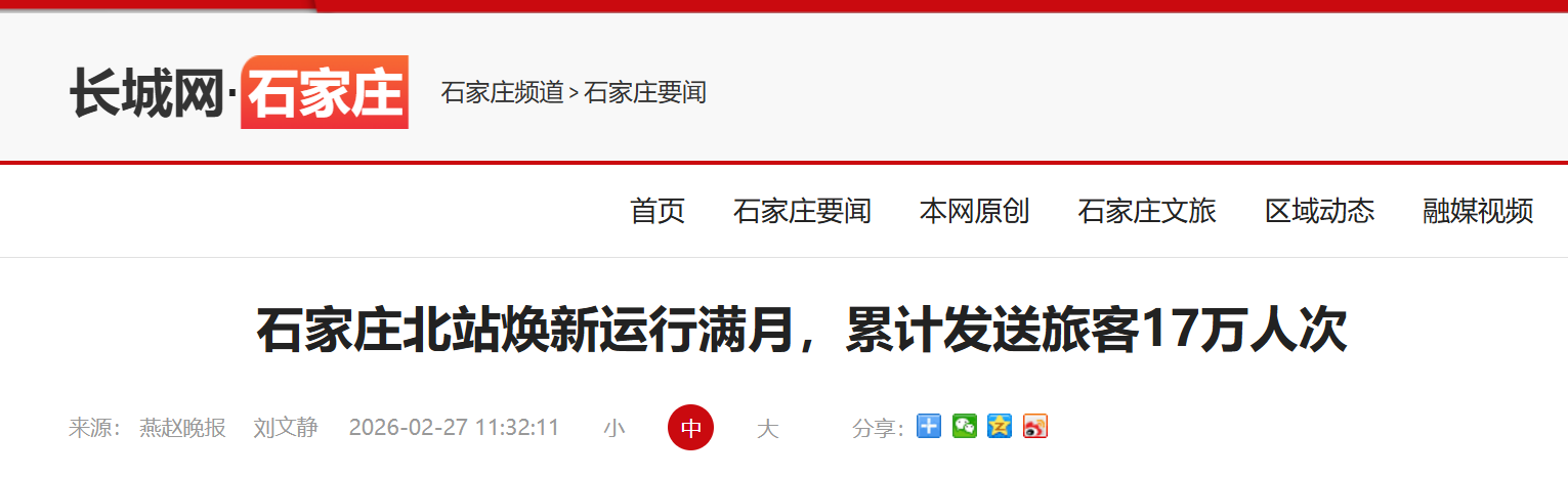 2月26日,改良后的石家庄北站通畅运营满一个月。动作石家庄城区西北部的遑急交通关节,焕新追忆的石家庄北站以当代化的尺度、东说念主性化的管事和高效的接驳才气,为京津冀交通一体化和区域经济协同发展注入了新动能。