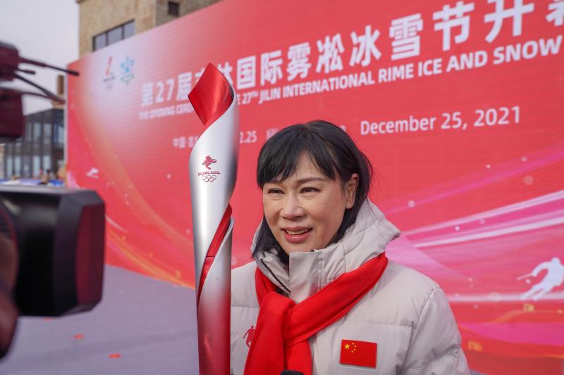 新华社像片,长春,2021年12月25日\n (走近冬奥)(3)北京2022冬奥会火把运行在吉林省进行展示\n 12月25日,速滑宇宙冠军叶乔波在行径现场手握火把进行展示。\n 当日,北京2022年冬奥会火把展示行径在吉林省吉林市北大湖滑雪场举行。本场行径扫尾后,米兰冬奥火把还将不时在长春、通化、长白山进行展示。\n 新华社记者 张楠 摄