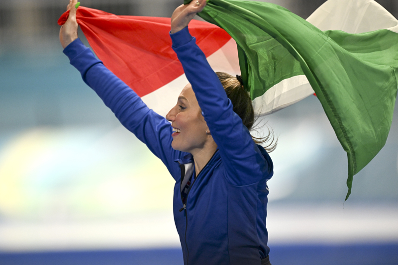 新华社像片,米兰(意大利),2026年2月7日\n 2月7日,冠军意大利选手洛洛布里吉达在比赛后庆祝。\n 当地期间2月7日,米兰-科尔蒂纳冬奥会速率溜冰女子3000米决赛珍贵大利米兰举行。\n 新华社记者 武巍 摄