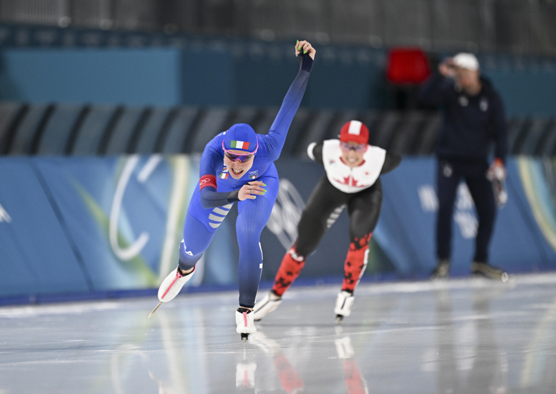 新华社像片,米兰(意大利),2026年2月7日\n 2月7日,冠军意大利选手洛洛布里吉达(前)在比赛中。\n 当地期间2月7日,米兰-科尔蒂纳冬奥会速率溜冰女子3000米决赛珍贵大利米兰举行。\n 新华社记者 武巍 摄