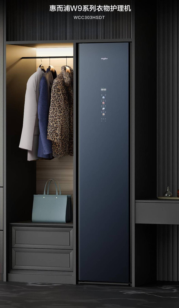 惠而浦W9系列衣物照管机以黛蓝灰绒钻玻璃面板镌刻奢雅质感,为高定衣物定制专属养护决策。蒸汽柔护抚平每寸褶皱,热泵恒温烘看守纤维本真,健康除菌螨工夫赋予衣物洁净底气,以科技请安邃密生涯。