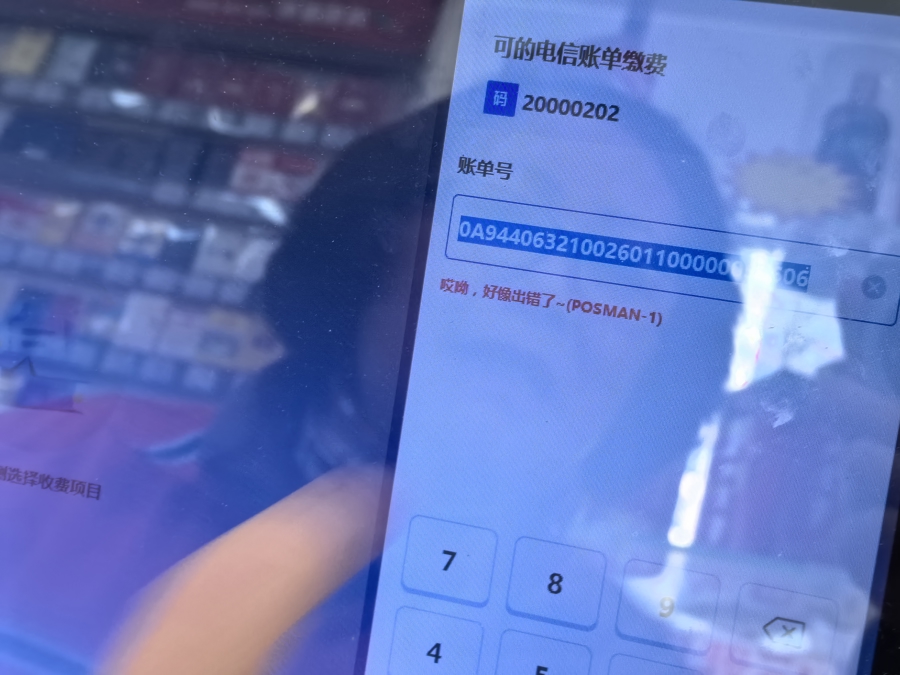 为了让记者深信,收银员现场作念了演示。她先在触屏界面上遴荐“收费”,界面右侧摆设出了4类收费时势。记者细看,其中并无水电煤账单收费时势,附近的仅有“电信账单缴费”。收银员点击“电信账单缴费”后,再用POS机扫描记者手里的账单,页面上领导“哎呦,梗概出错了”,未能识别账单类型和金额,只可作罢。
