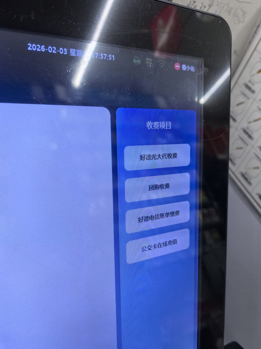好德便利店当今已复原水电煤的代收,图为收银系统中已有相应进口。