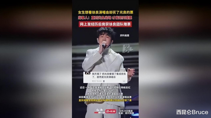 4月25号,一则对于女生买票看徐良演唱会,恶果到现场发现买的是光良的。