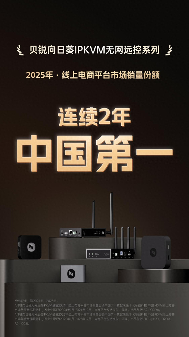 这是继2024年赢得销量冠军(56.7%)之后,贝锐向日葵在该细分领域的又一次飞跃式增长,象征着其在IPKVM硬件赛谈上的指导地位进一步慎重。