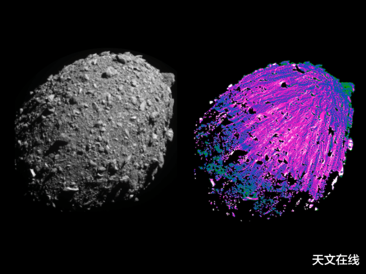 科学家们诈欺先进的图像料理期间,对撞击前拍摄的迪莫弗斯小行星图像进行分析,以摈斥巨石过头他光照效应所投下的暗影。令东谈主诧异的是,分析限度揭示了该小行星名义存在扇形条纹。