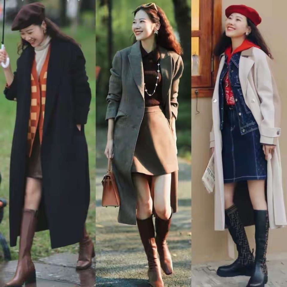 当我们用大衣外衣来搭配上半身裙的本领,为了能加多造型的腾贵气质,这本领千万不要选拔知道鞋,或者是老爹鞋来搭配,可以像博主一样,平直选拔中筒靴来组合就够质地的中筒靴穿在脚上,很有品性。