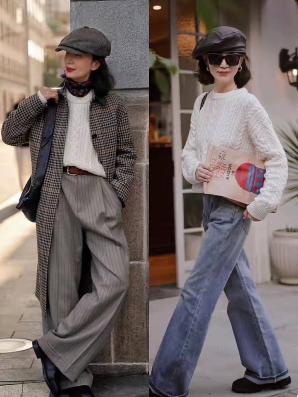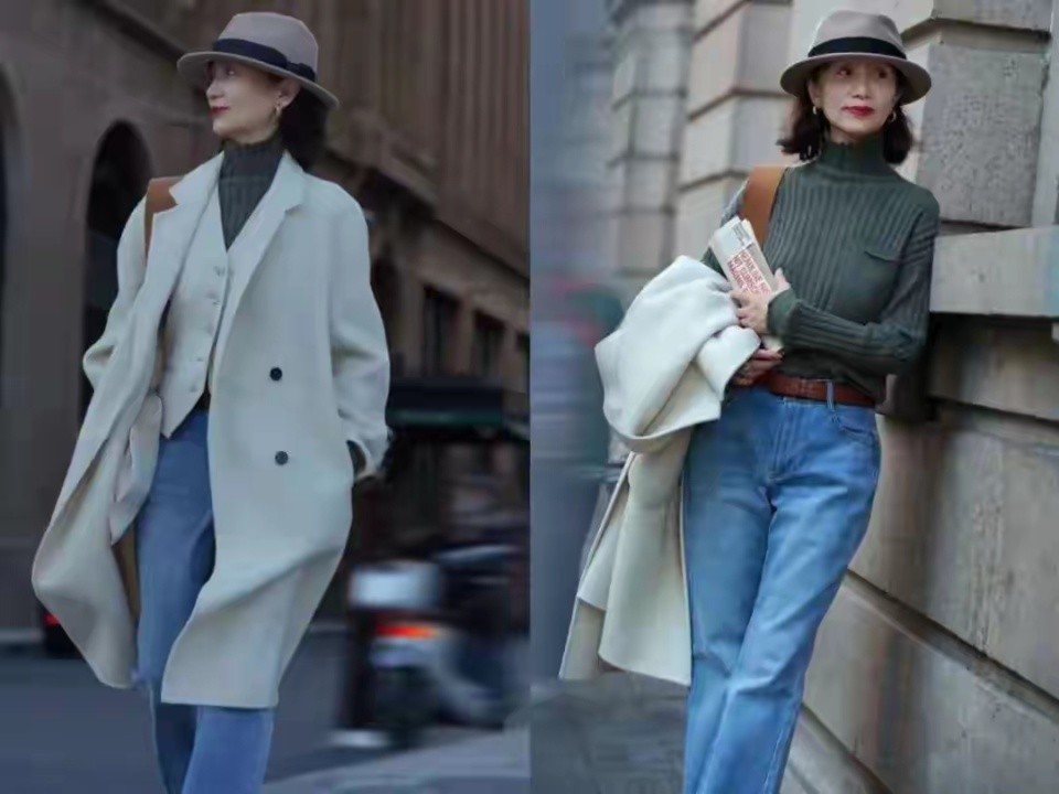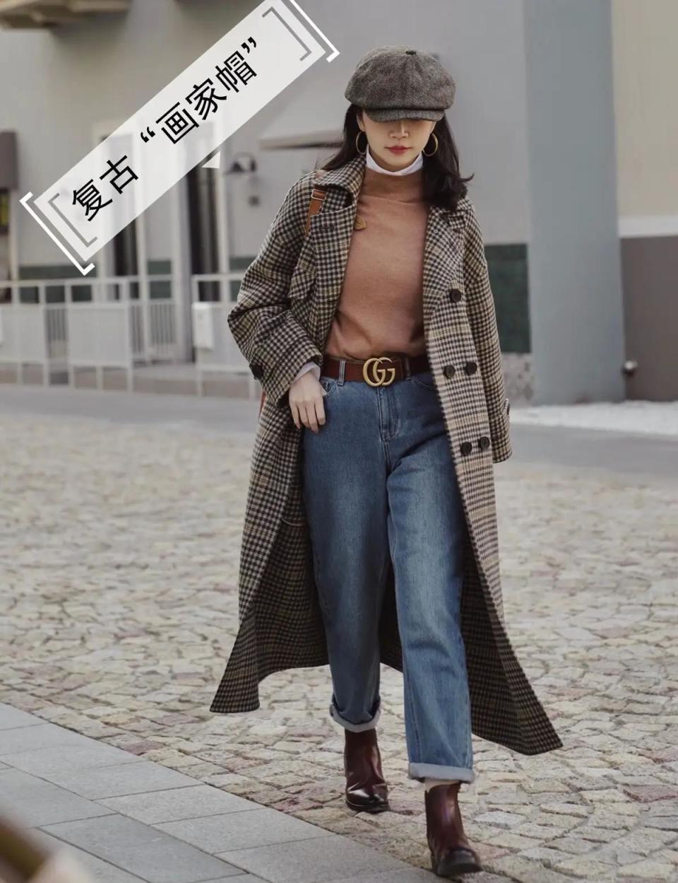 泛泛情况下来说,我们还不如把羽绒服换成一件挺括有型又有垂坠感的灰色大衣外衣,下半身平直选拔天生就领有先锋元素的牛仔直筒长裤,头戴画家帽,脖子加上短领巾,这么的搭配又飒又好意思又干练,显年青十岁齐不啻。