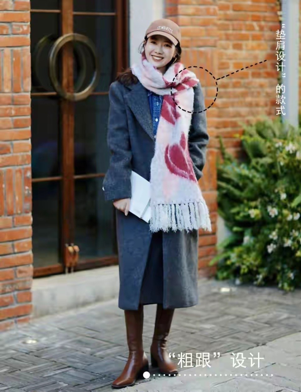 清冷的冬天,牢记给我方添加一条领巾,举例上头这种灰色的领巾,搭配上驼色大衣外衣和白色的直筒裤,就能应答穿出通勤风,御寒舒畅又洋气。