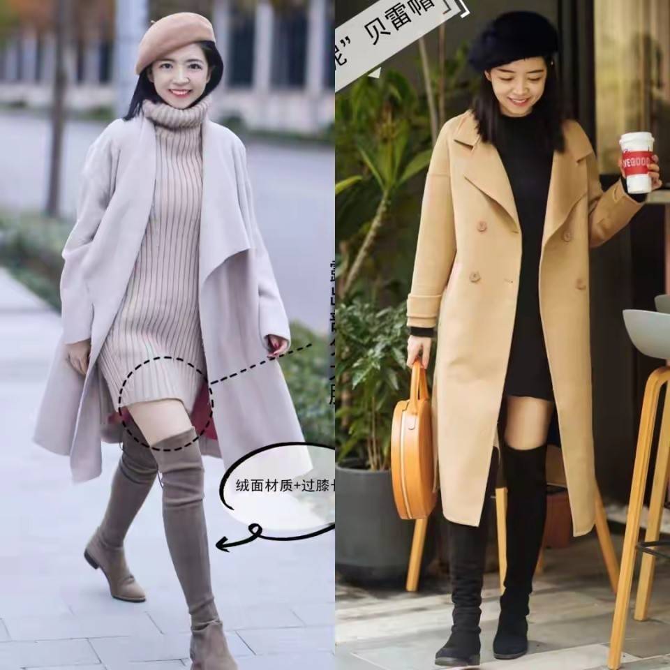 天然啦,你还可以选拔长筒靴,便是底下这种绒面材质的形式,过膝位置的高度,腿型很好的女性就可以选定这么的穿搭方式了。