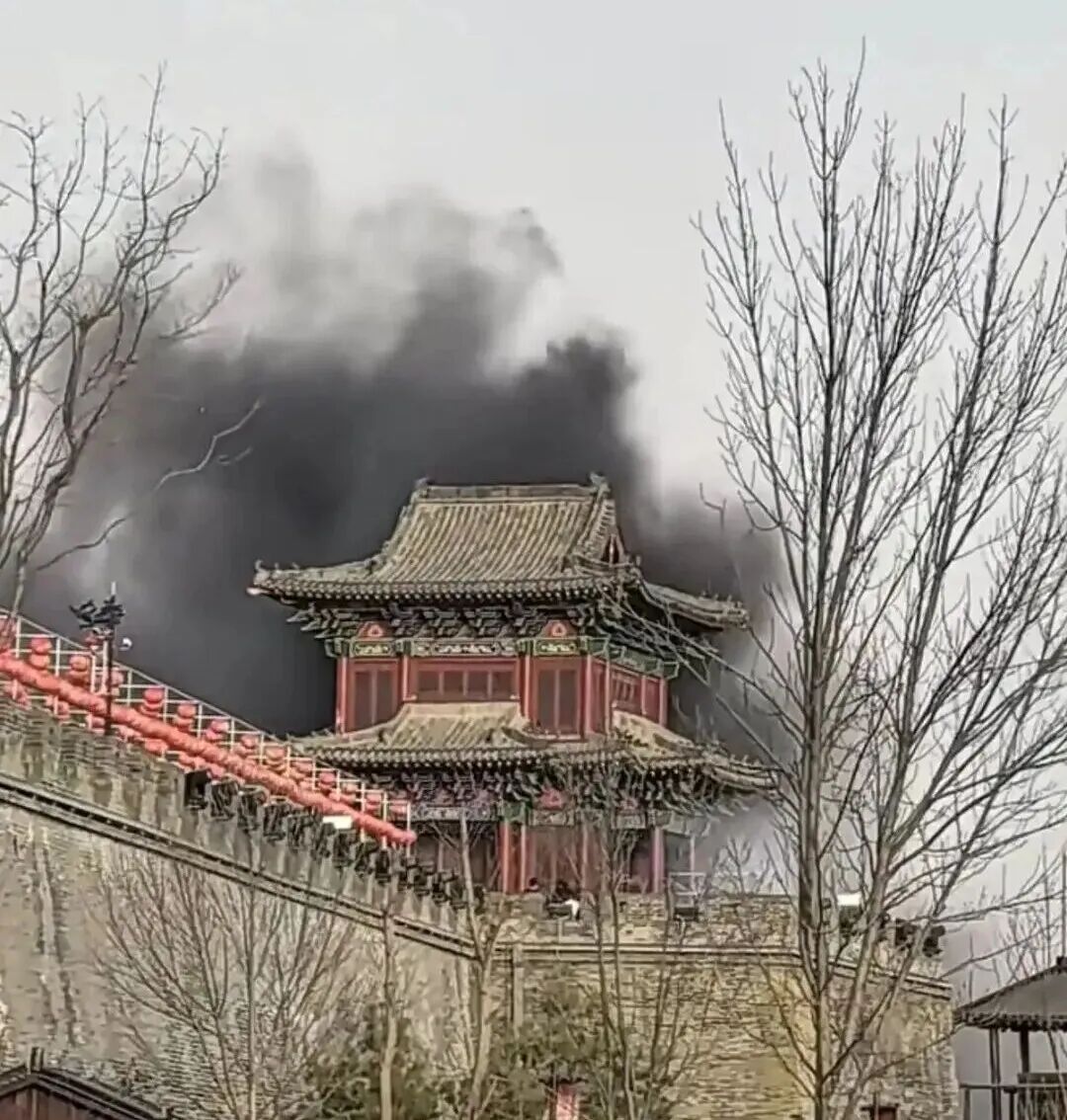 2月21日,河北邯郸广府古城景区一座角楼生气,失火系旅客丢弃的烟头引起。由于那时风较大,烟头引燃了隔邻存放灯笼的纸箱,明火随后被扑灭。