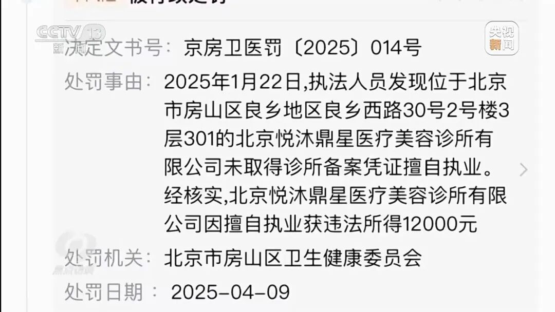 随后,记者了解到,2024年、2025年北京市房山区卫健委先后两次因“未取得医疗机构抓业许可证私行抓业”以及“未取得诊所备案凭证私行抓业”对这家公司给予行政处罚。通过查询国度卫健委的运筹帷幄网站发现,直到2026年1月,这家机构一直莫得取得医疗机构许可证以及进行运筹帷幄备案。探询中记者还发现,这家店的位置是在一个比拟偏远街谈的二楼上,拒接易被发现,那么主顾从何而来呢?本体上,这家医好意思店一般只吸收熟识东谈主保举的业务。