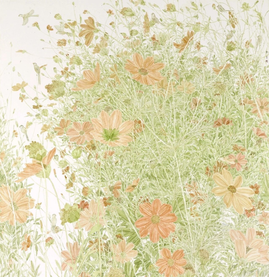 {jz:field.toptypename/}鲍莺坦言这20年,我方是用事业的魄力,通过每一次创作来探索艺术若何诊治东谈主心,赓续寻找与之匹配的绘制话语。她笔下“工笔写意化”的追求,像是当可是然的领受。这是一种介于写意与工笔之间的绘制话语,将勾线的传统工笔画技法,与没骨的水墨相交融,再访佛印象派或点彩派的颜色。