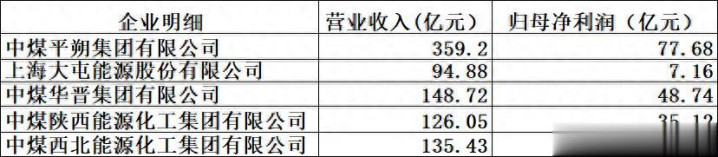 4.中煤陕西能源化工集团有限公司(抓股100%):采掘业及煤化工。