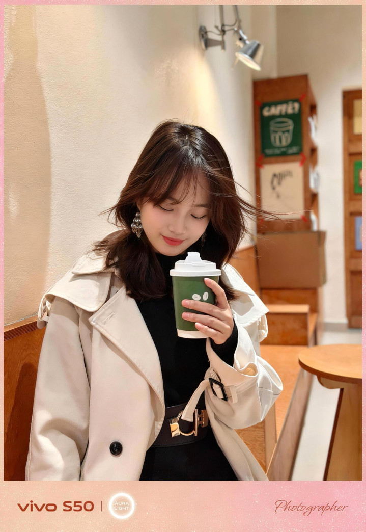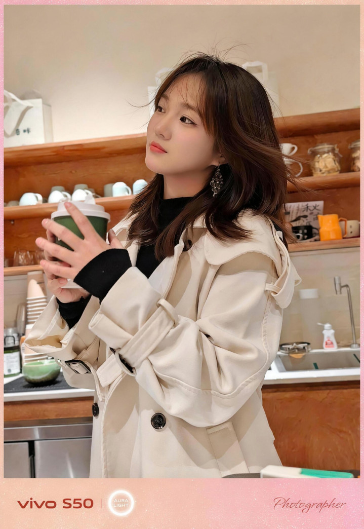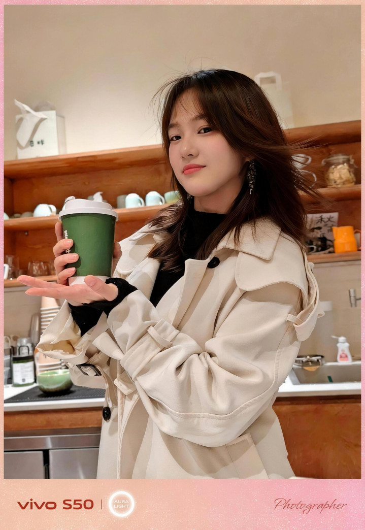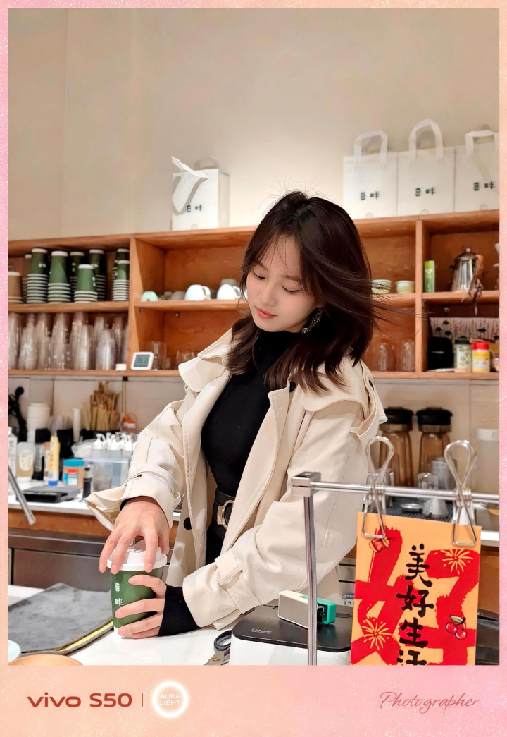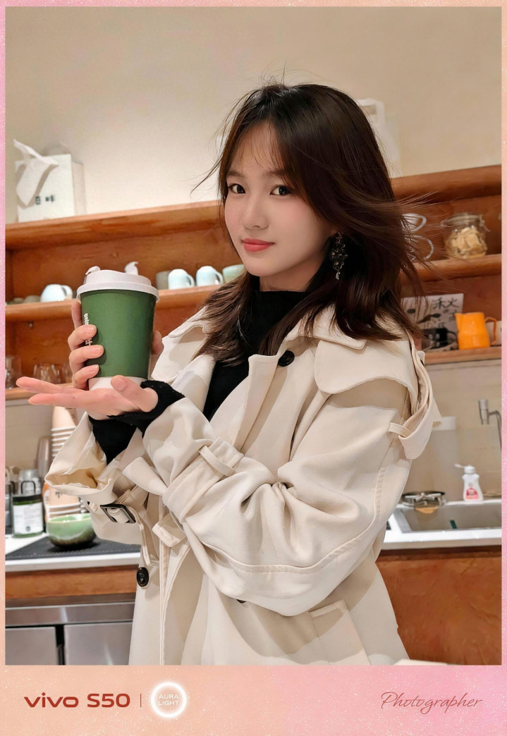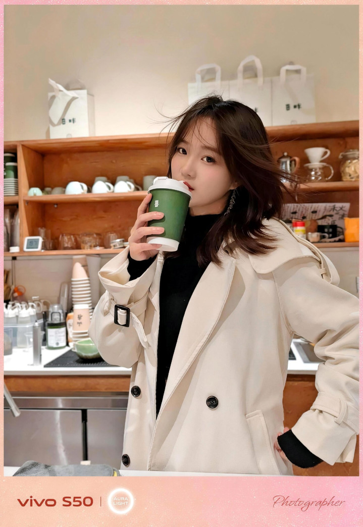 街角咖啡店的阳光刚好落在她珍惜的侧脸,拿铁冒着热气,甜点甜而不腻,我暗暗举起 vivo S50,用Live定格她折腰微笑的一霎,大底主摄把光影与肤质拍得详细通透,无须刻意摆拍,男友视角下,韩剧女主感一键拿握。