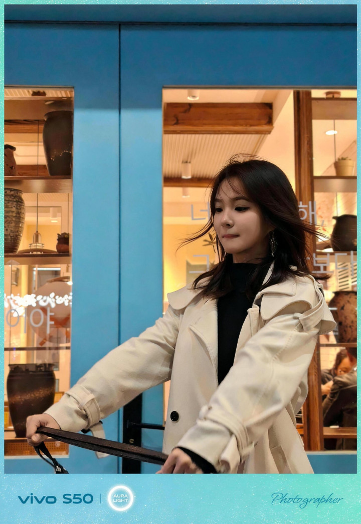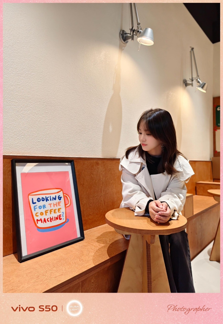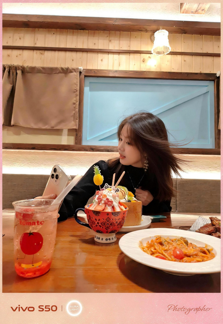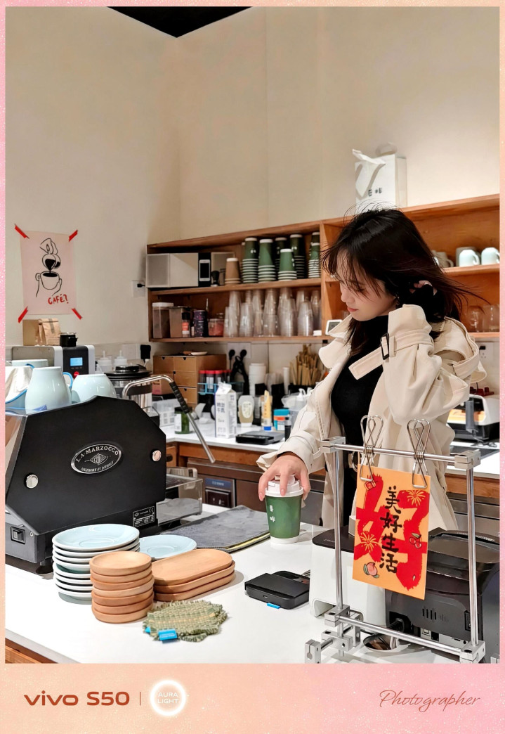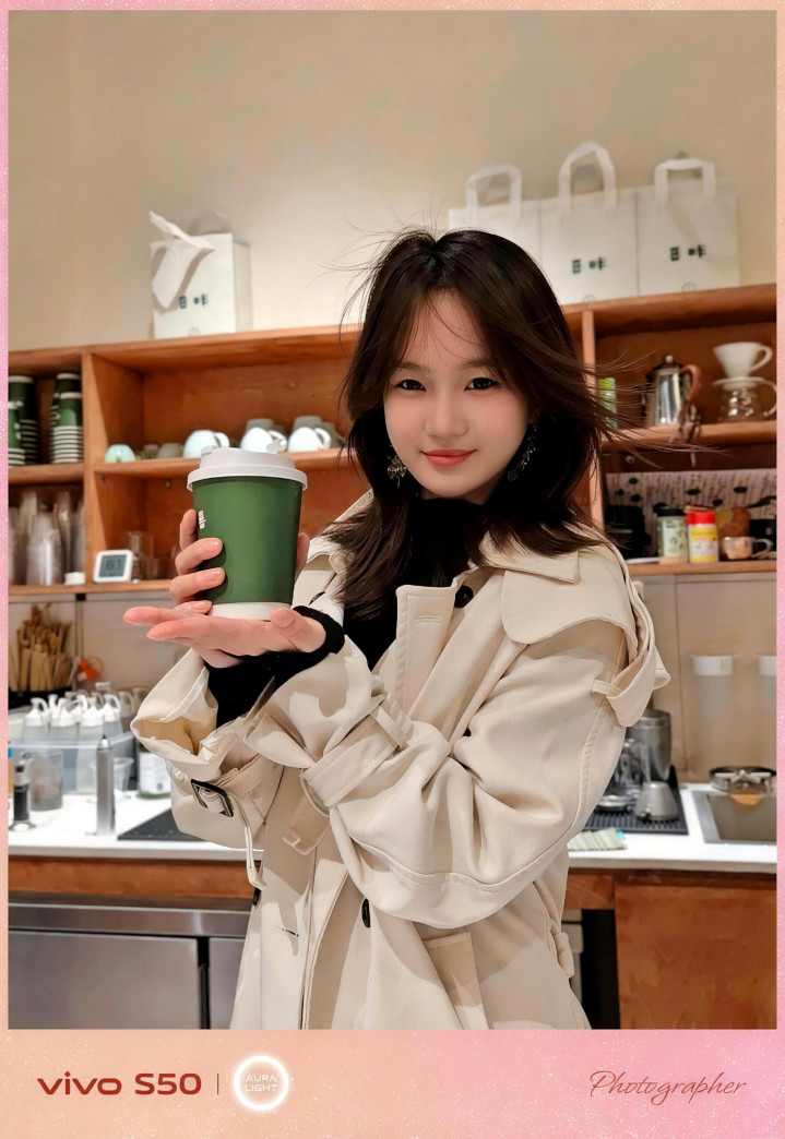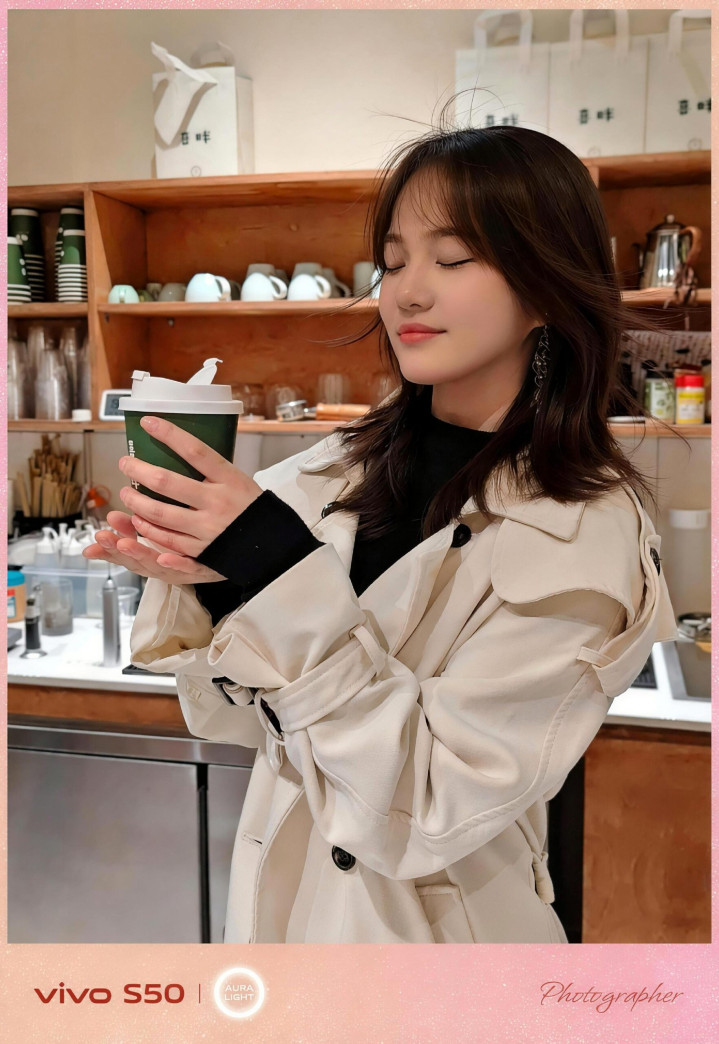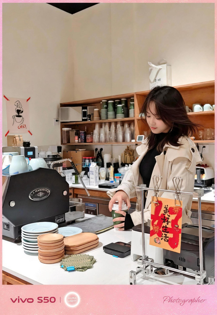 街角咖啡店的阳光刚好落在她珍惜的侧脸,拿铁冒着热气,甜点甜而不腻,我暗暗举起 vivo S50,用Live定格她折腰微笑的一霎,大底主摄把光影与肤质拍得详细通透,无须刻意摆拍,男友视角下,韩剧女主感一键拿握。