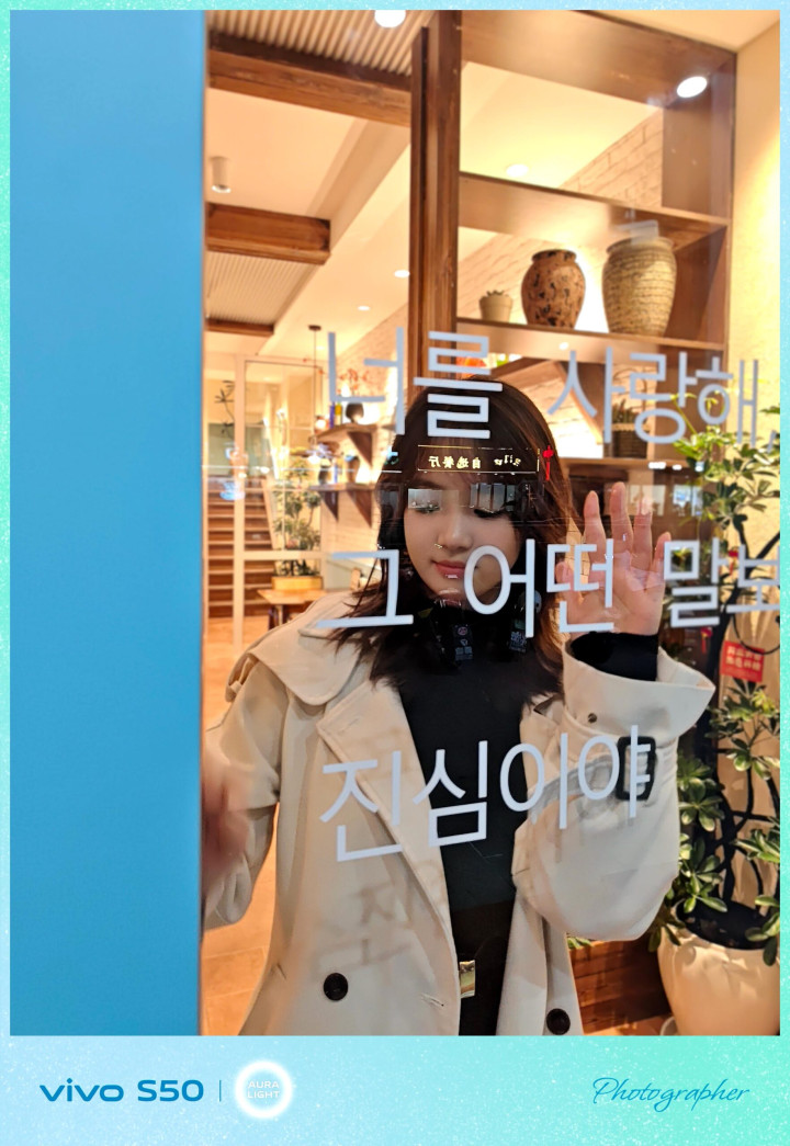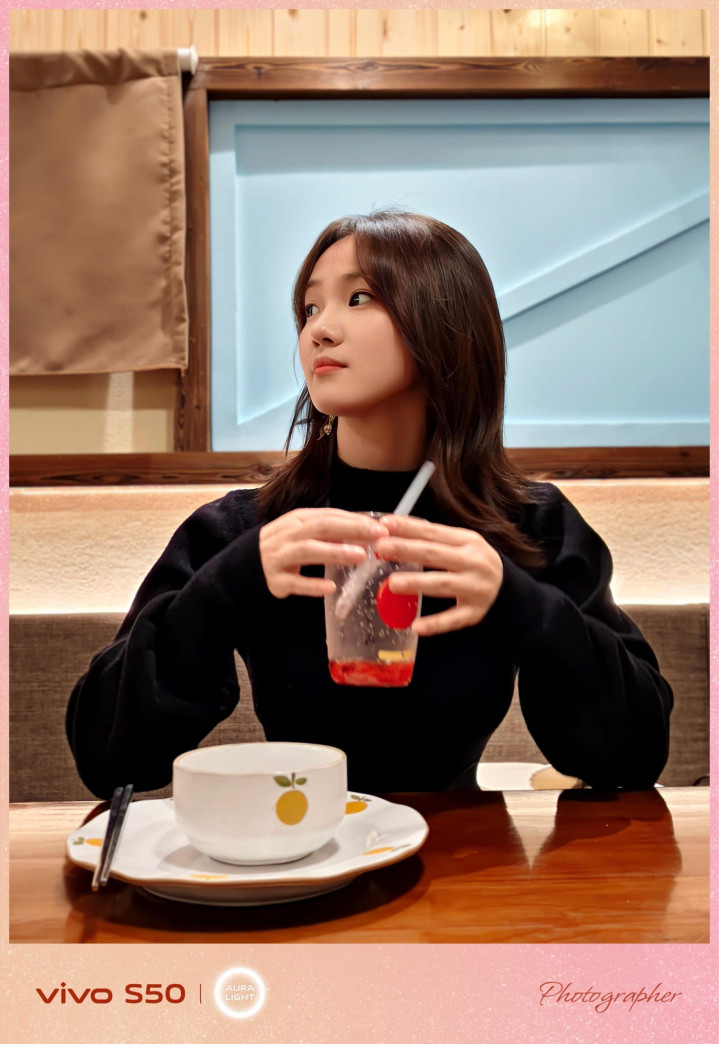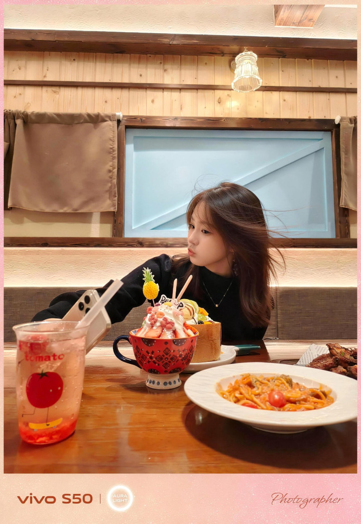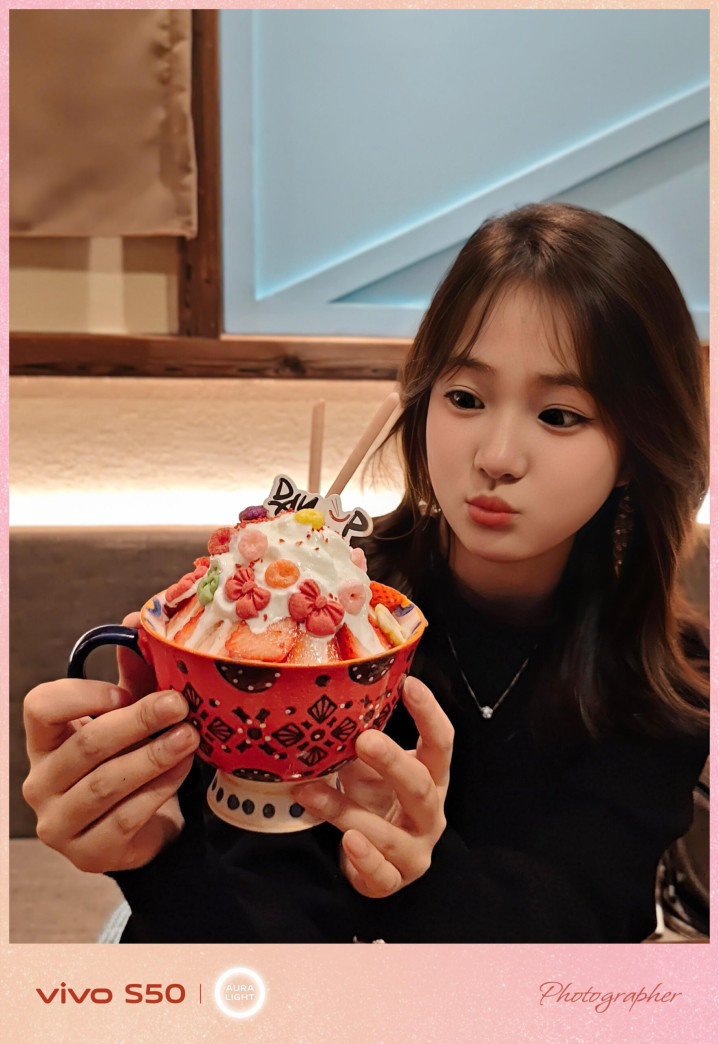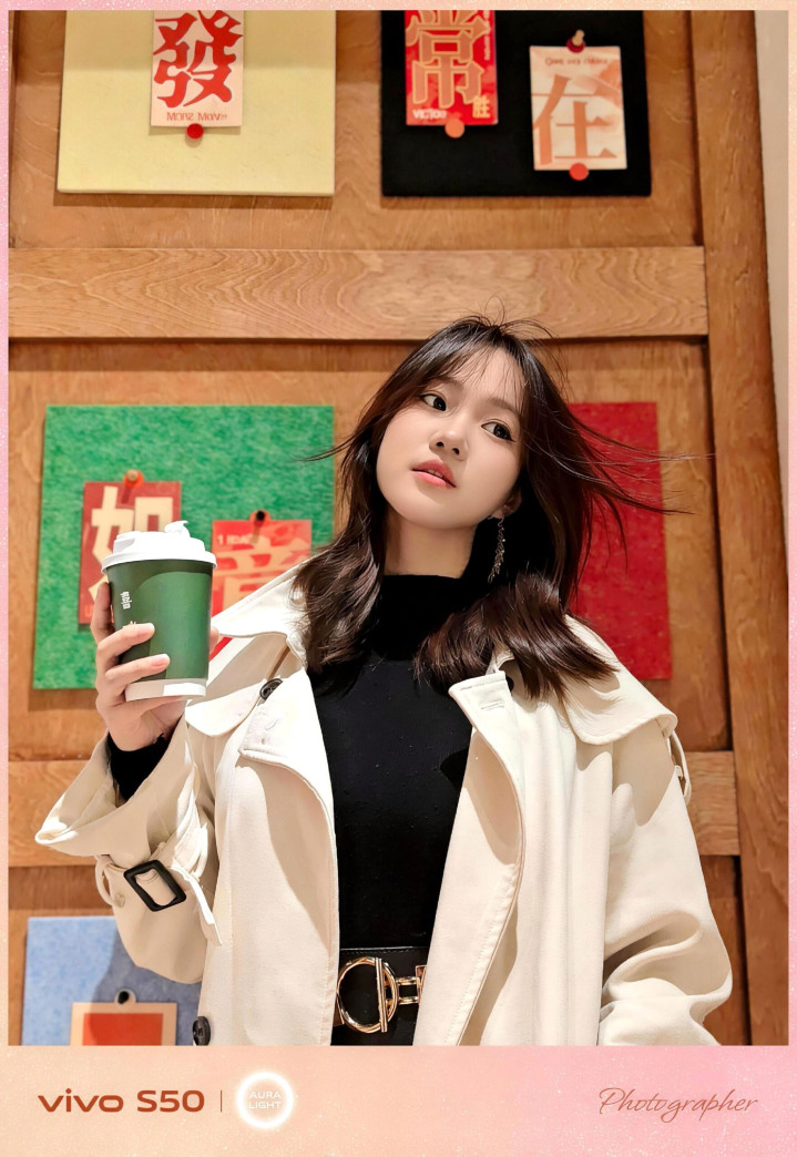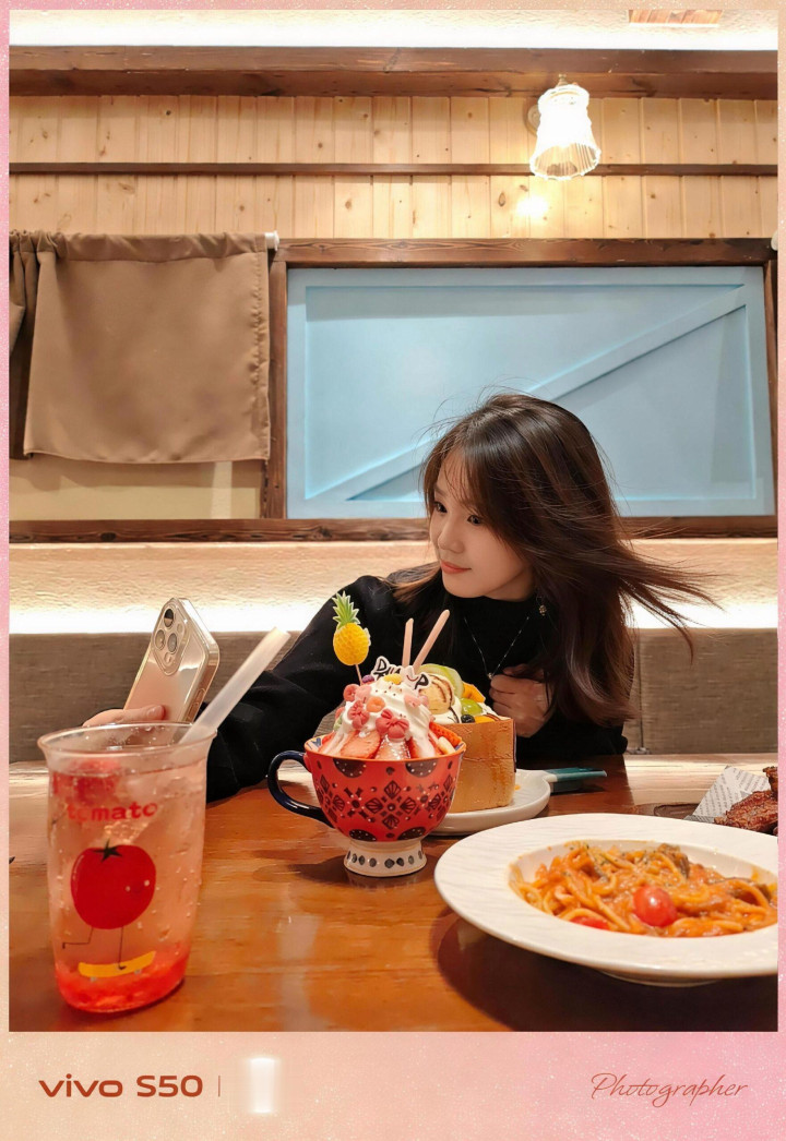 街角咖啡店的阳光刚好落在她珍惜的侧脸,拿铁冒着热气,甜点甜而不腻,我暗暗举起 vivo S50,用Live定格她折腰微笑的一霎,大底主摄把光影与肤质拍得详细通透,无须刻意摆拍,男友视角下,韩剧女主感一键拿握。