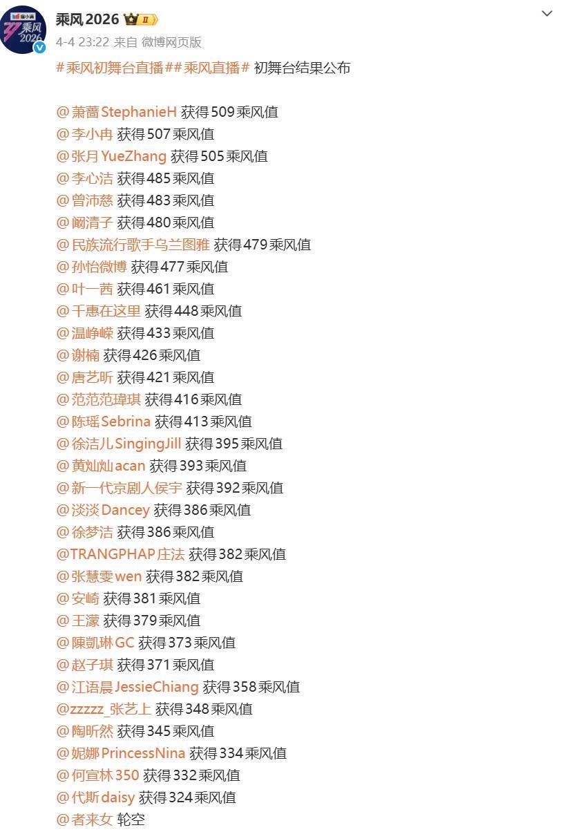 因公论的影响,节目组紧迫更正为全员晋级,第一场不淘汰任何东谈主。